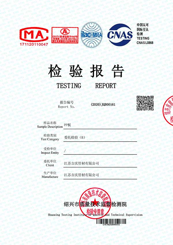 江蘇吉慶管材集團(tuán)有限公司創(chuàng)辦于2010年2月,是pp管,pp管材,pp管件,pp風(fēng)管,frpp管,frpp管材,pph管,pph管材,pph管件,pph風(fēng)管,pvdf管,pvdf管材,pp儲(chǔ)罐,pp板材的專(zhuān)業(yè)化生產(chǎn)企業(yè)。公司占地30余畝,擁有各類(lèi)資產(chǎn)8000余萬(wàn)元,專(zhuān)業(yè)技術(shù)人員20余人,管材生產(chǎn)線(xiàn)10條,管件生產(chǎn)線(xiàn)11條,具備了10000余噸各類(lèi)防腐塑料制品的年生產(chǎn)能力。公司通過(guò)了ISO9001-2000質(zhì)量體系認(rèn)證,同時(shí)被評(píng)為AAA信用單位,2018年公司被評(píng)為高新技術(shù)企業(yè),此后陸續(xù)取得安全生產(chǎn)管理證書(shū)等榮譽(yù)。公司位于水上花園城市----江蘇省揚(yáng)中市八橋鎮(zhèn)永福路18號(hào),交通便捷,可直接導(dǎo)航至公司園區(qū)內(nèi)。公司全體員工將以高度的敬業(yè)精神,嚴(yán)格的質(zhì)量控制理念和科學(xué)的管理方法,及時(shí)周到的服務(wù),竭力為我國(guó)塑料管道在各領(lǐng)域的推廣和應(yīng)用作出更大的貢獻(xiàn)!